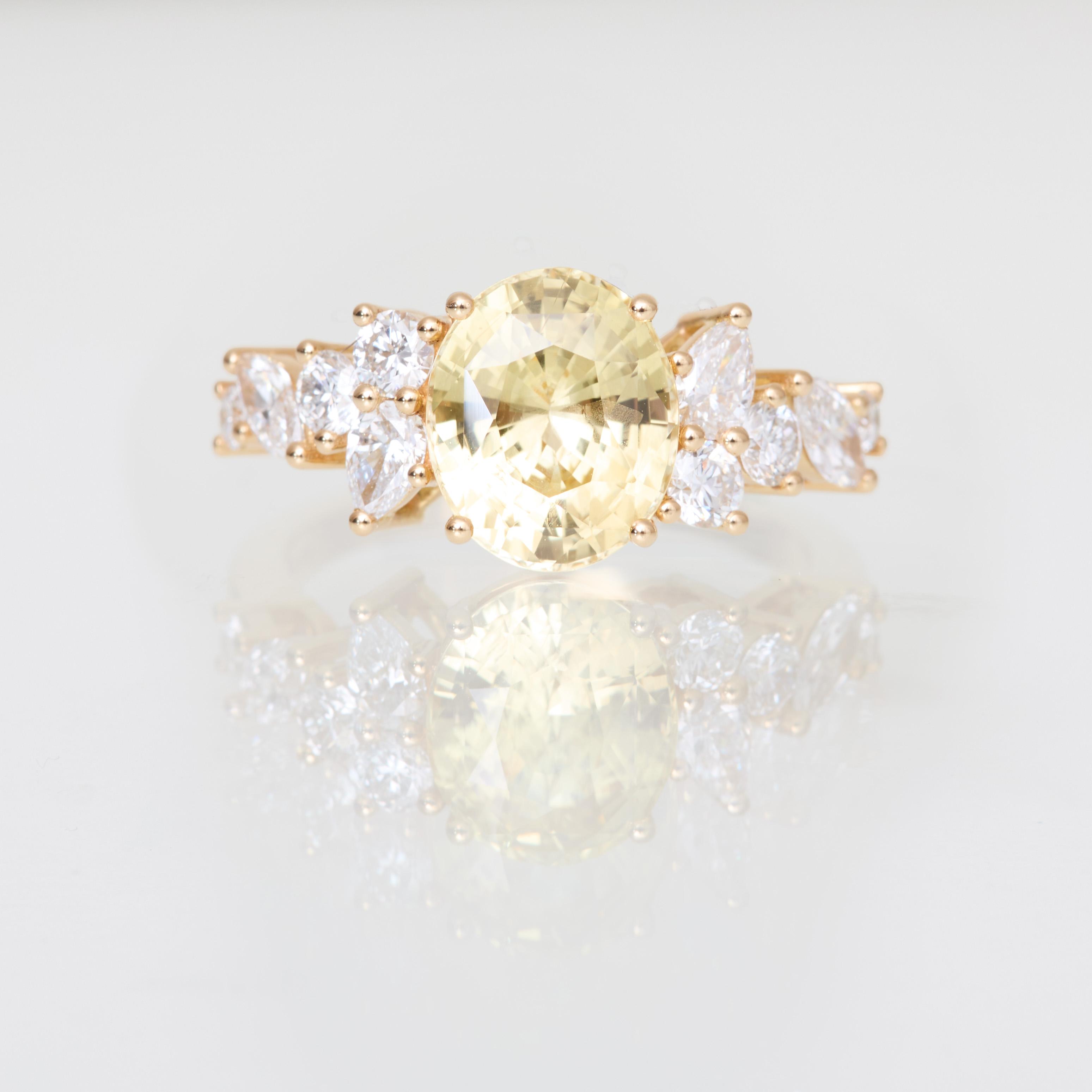Saphir Jaune de 3.08 carats de forme ovale non chauffée