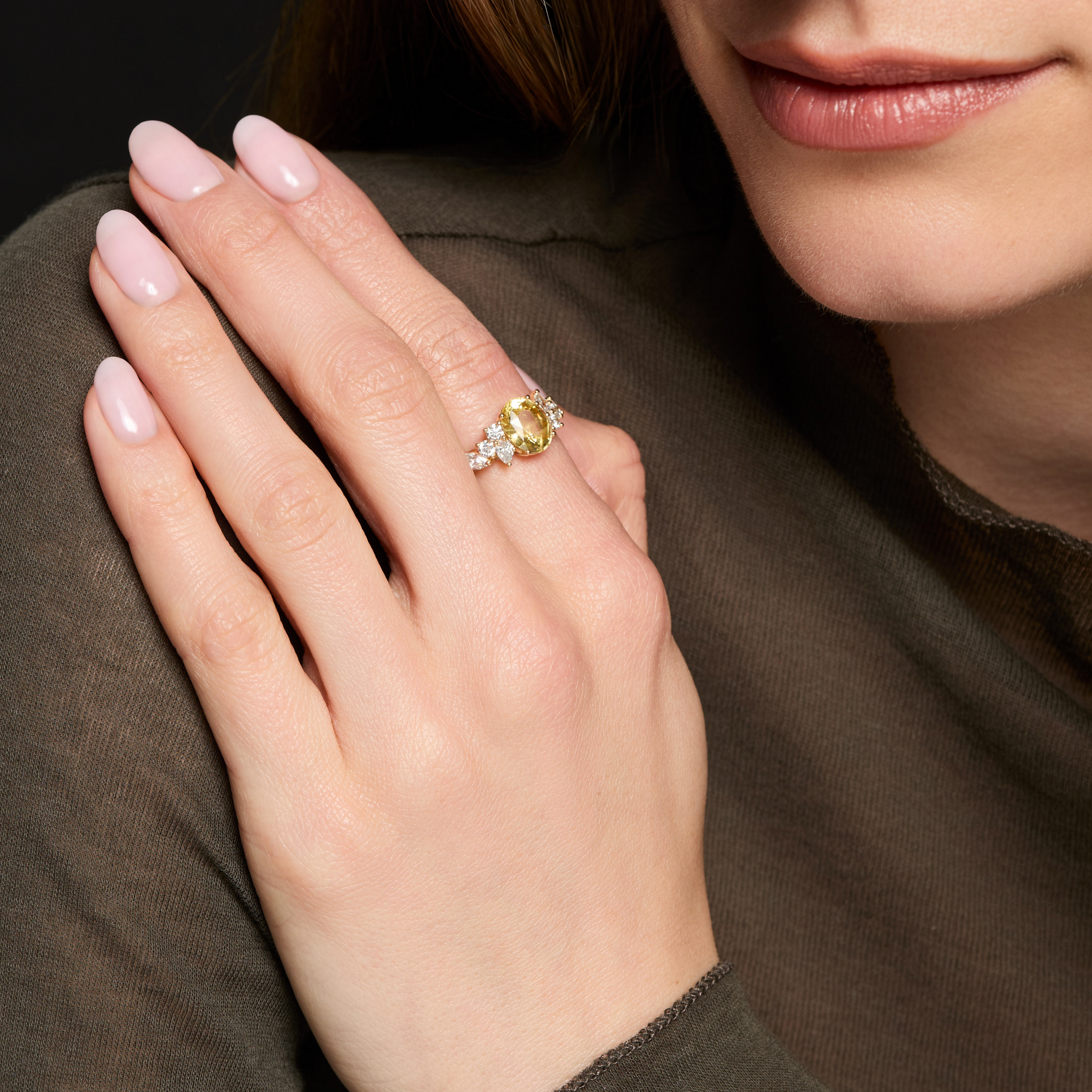Le saphir jaune diffuse une lumière douce et chaleureuse, accentuée par la teinte solaire de l’or jaune. Une bague lumineuse qui évoque une élégance naturelle.
